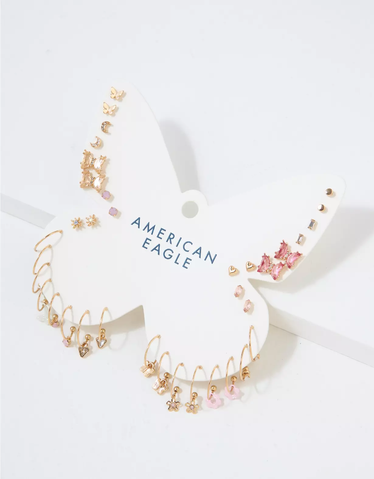 These earrings are giving us all the butterflies! Designed in various shapes, this set of gold-tone butterfly earrings adds a hint of free-spirited sparkle to your every day.
