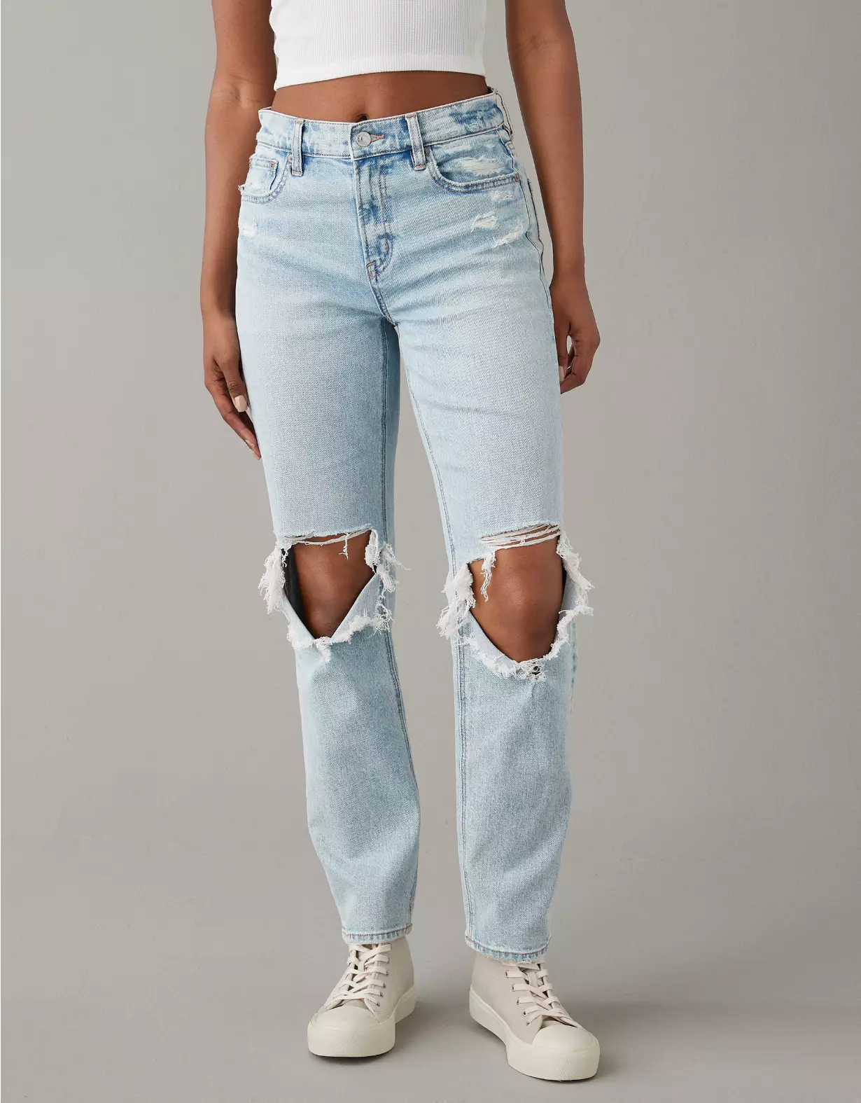 AE Stretch Super High-Waisted Ripped Ankle Straight Jean