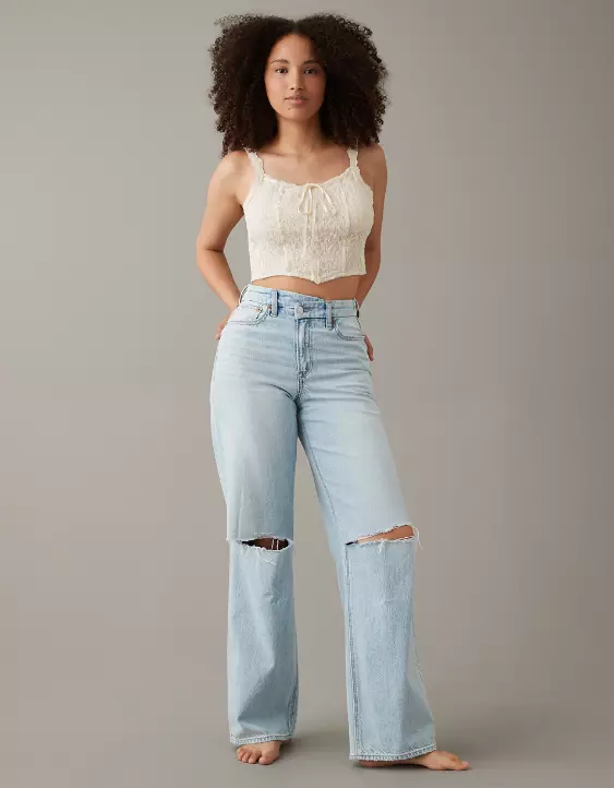 AE Strigid Curvy Super High-Waisted Ripped Baggy Straight Jean