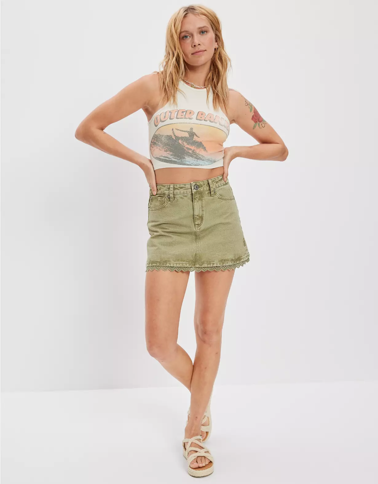 Easy denim style, made even better with an adorable lace detail on the hem.