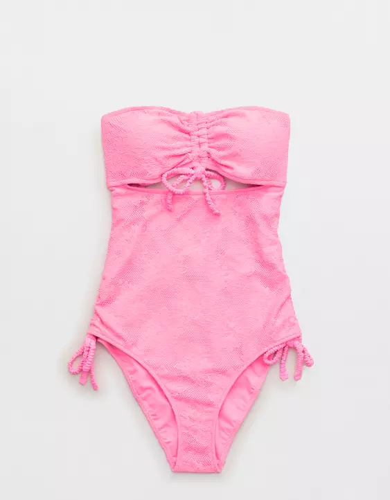 Aerie Lace Cut Out Strapless One Piece Swimsuit