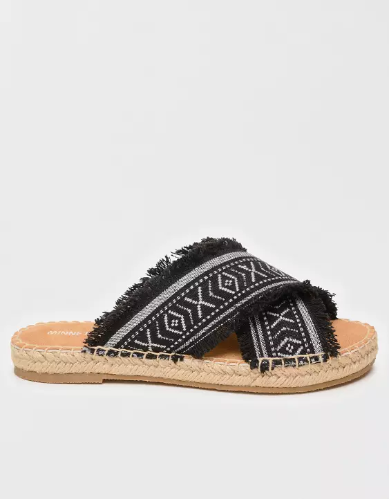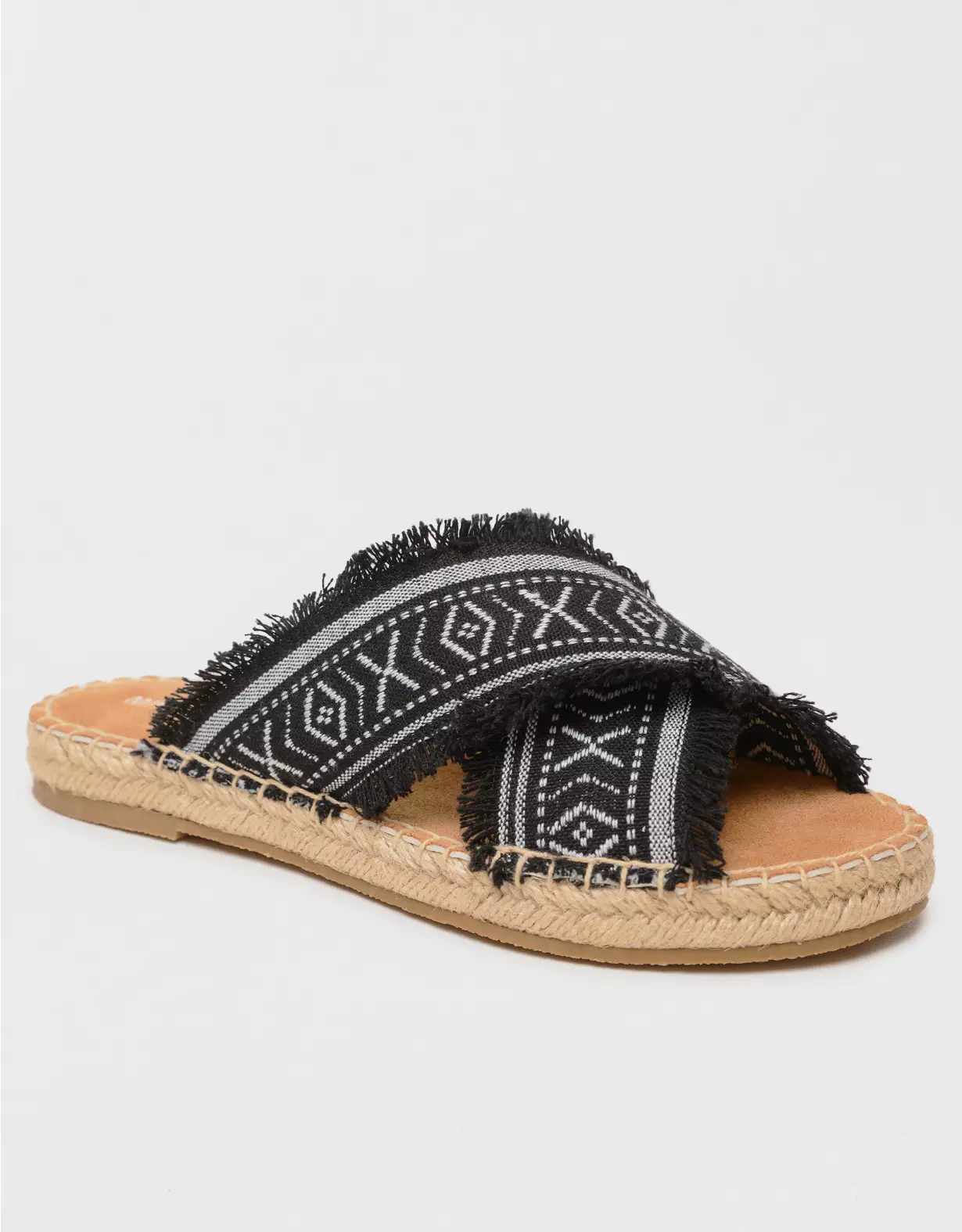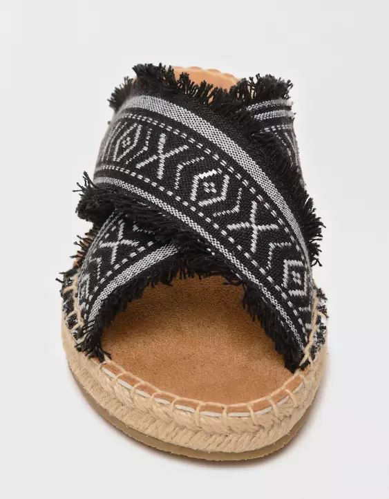 So sleek, so chic, and ready to complete your warm weather wardrobe. Featuring a comfy, frayed fabric crossband design and braided jute detail, these statement espadrille slides are the perfect finishing touch to any sunny day outfit.