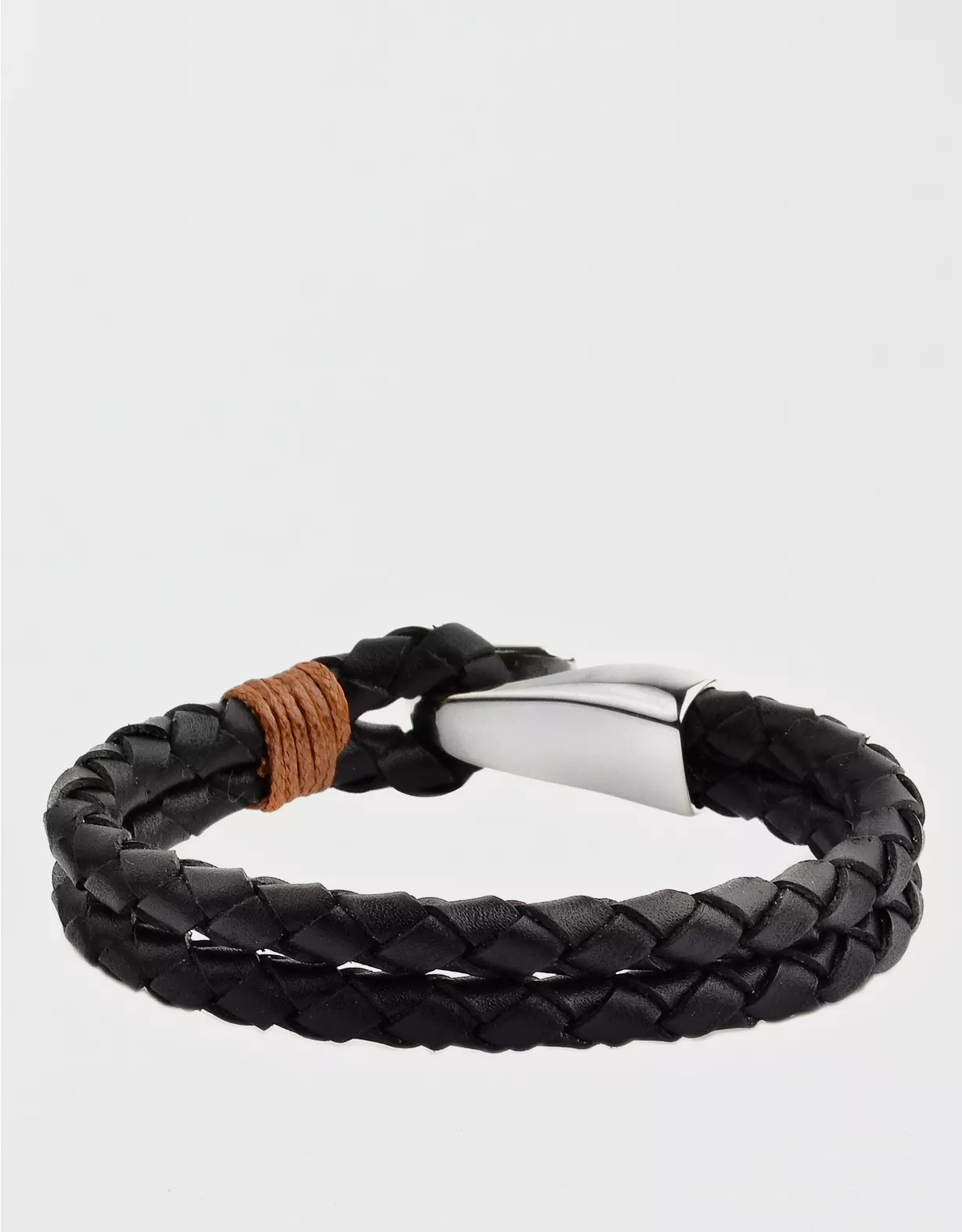 West Coast Jewelry Stainless Steel Braided Leather Bracelet
